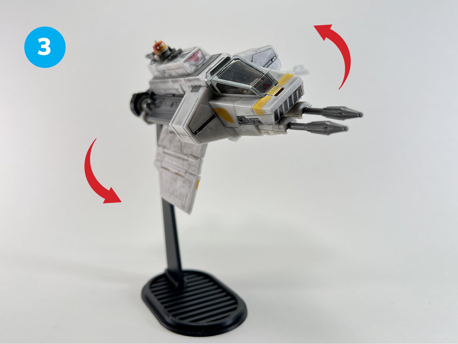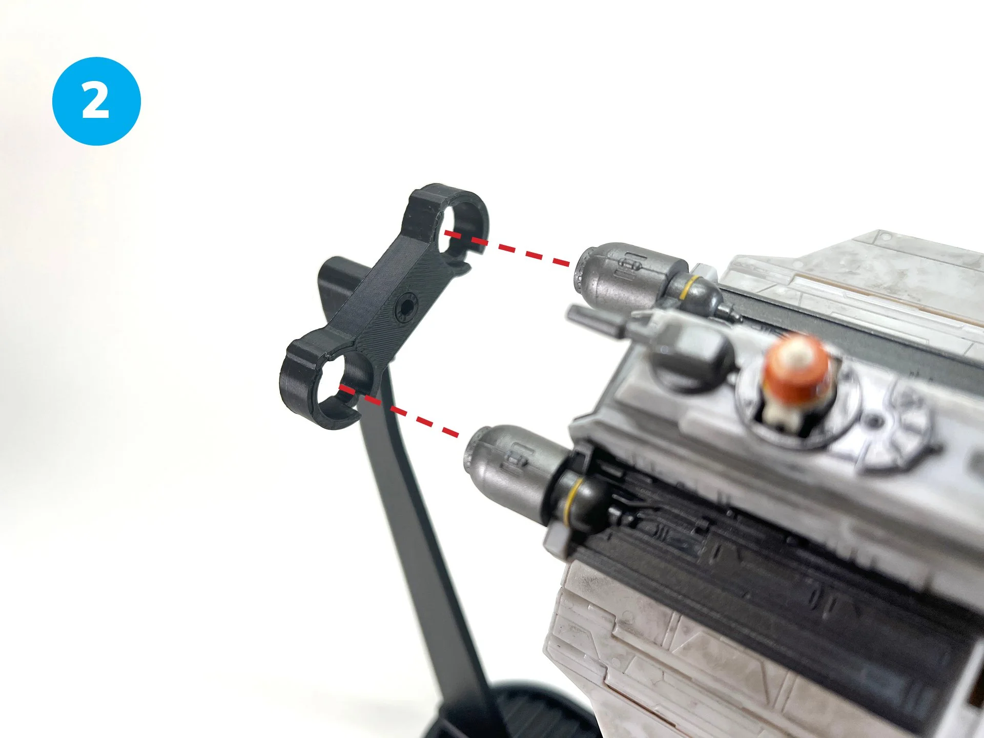 Slide the Swivel Mount assembly onto the thrusters at the rear of the ship.