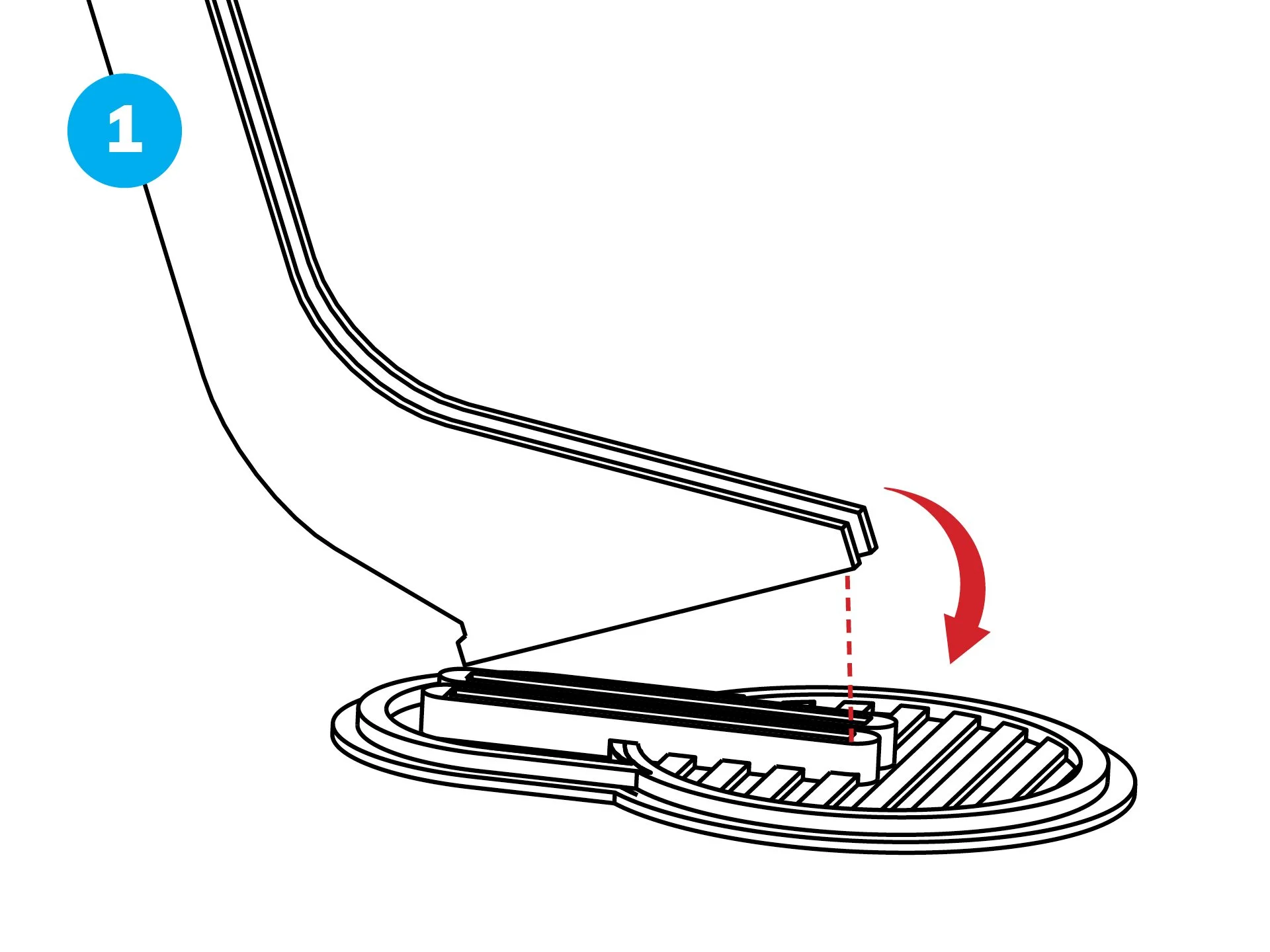 Position the forks of the Swivel Mount assembly beneath the ship by sliding them into place.