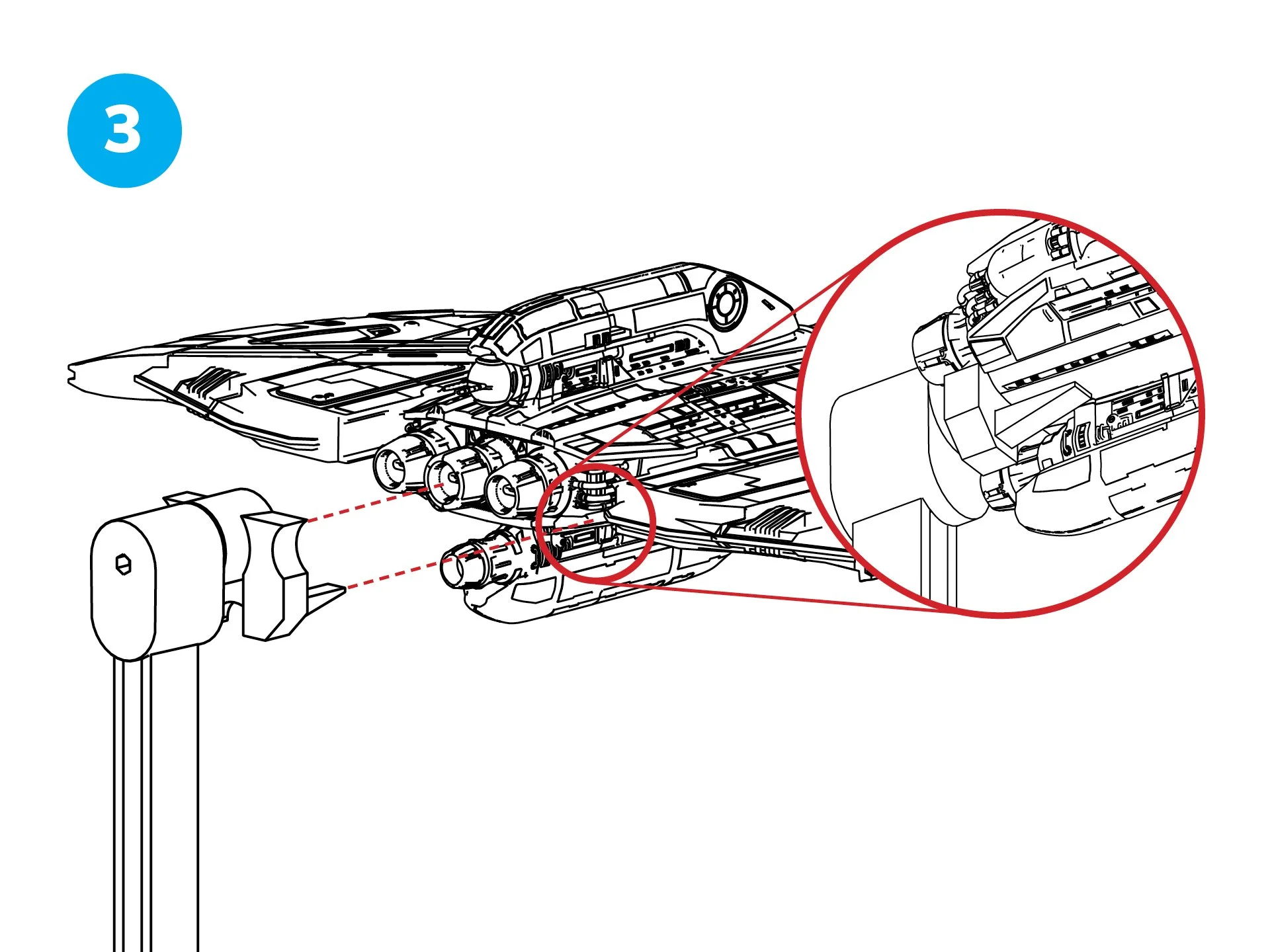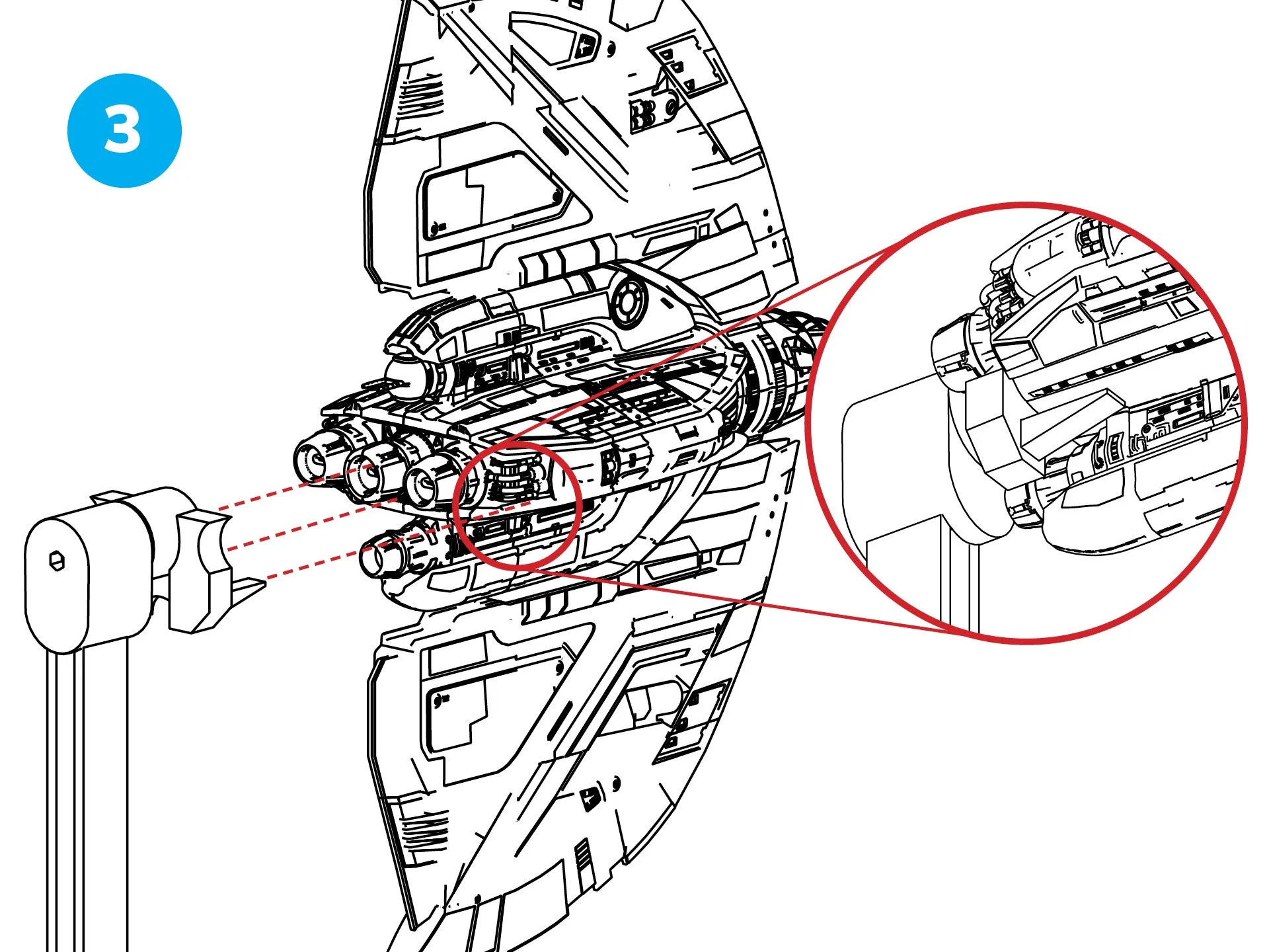 Attach the Swivel Mount assembly by sliding it onto the central thruster located at the back of the ship.