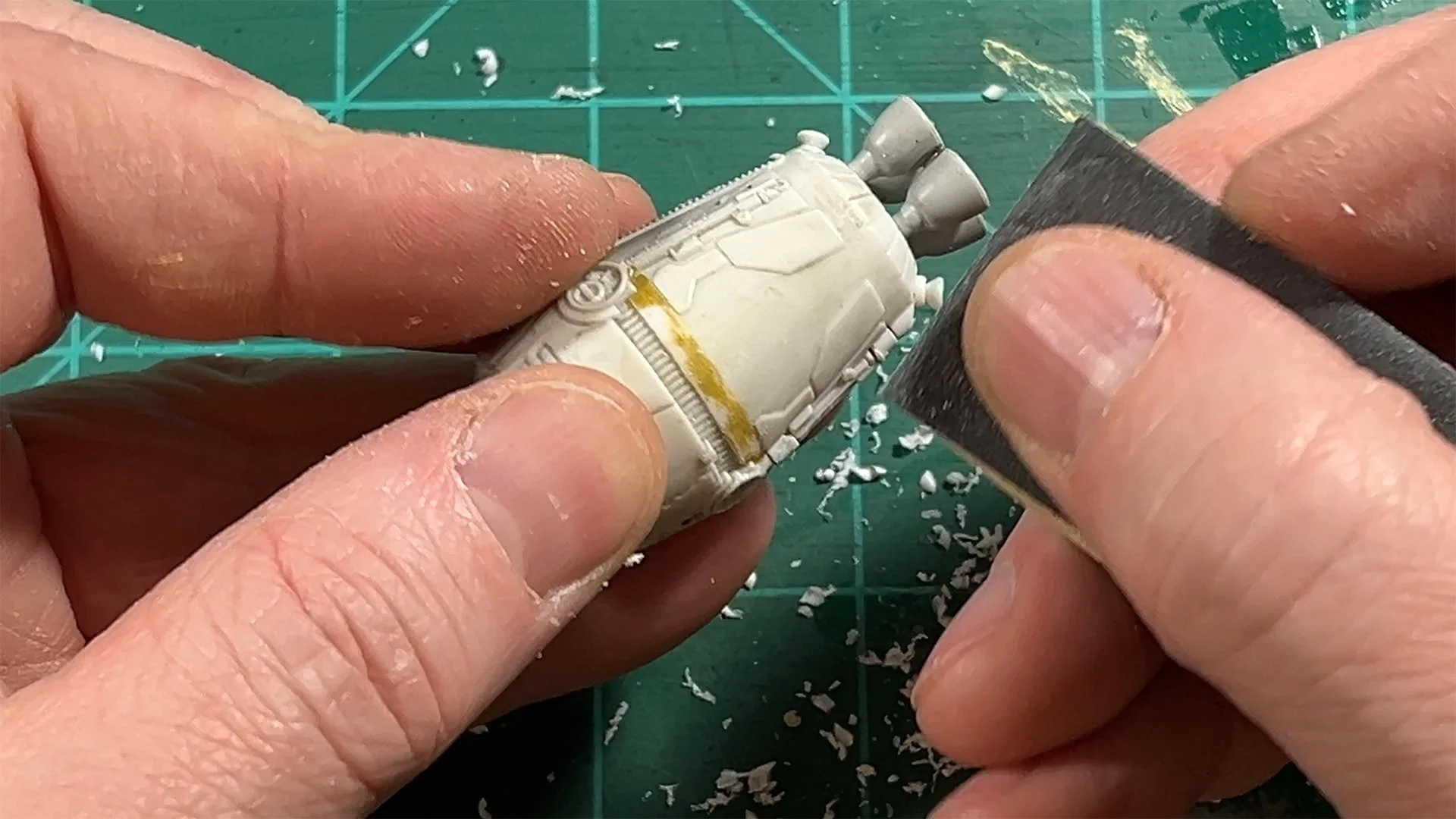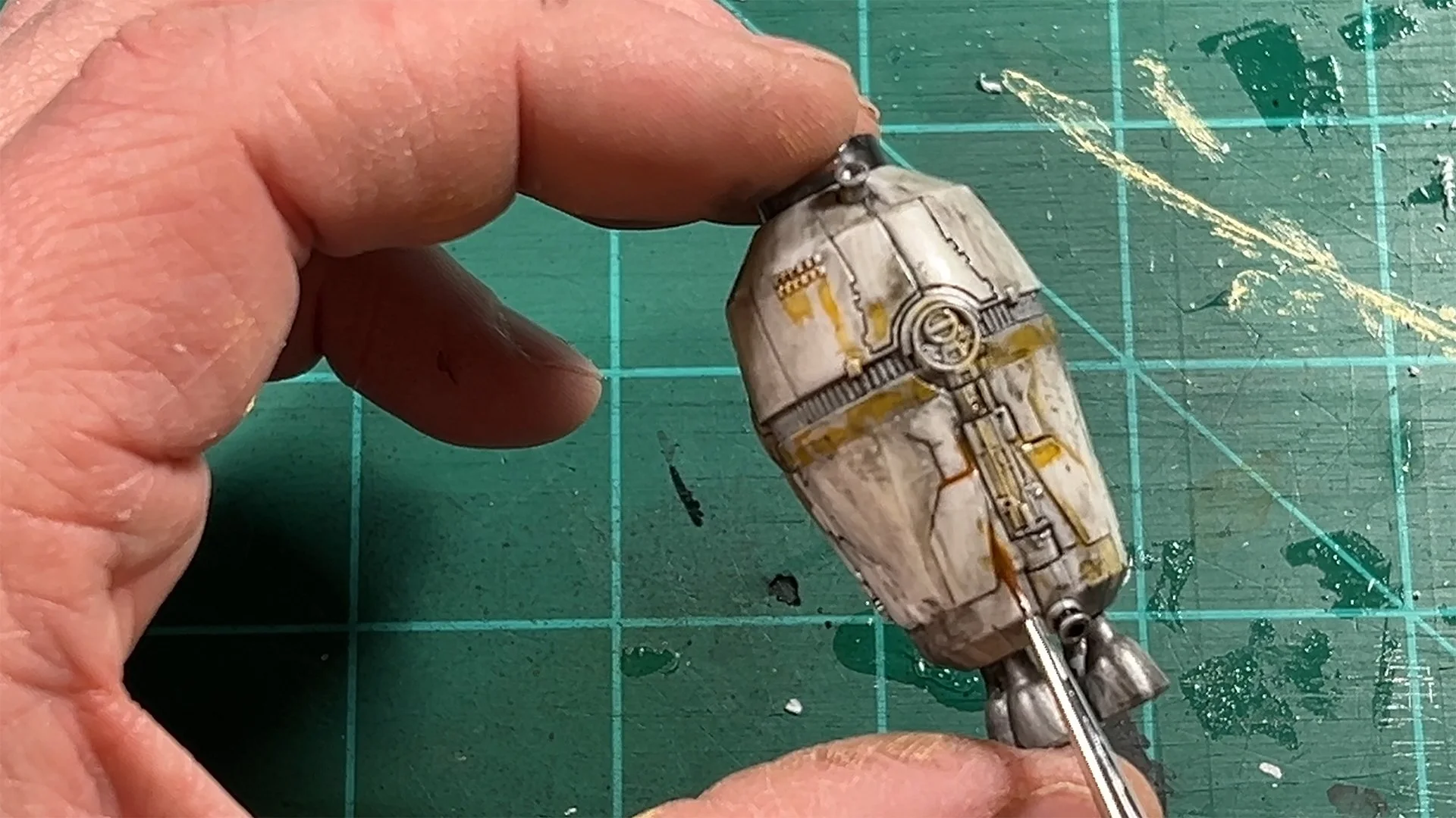 Paint Scuffing: The pod’s surface was scuffed to create a worn look, with gray paint applied to match the original color scheme.