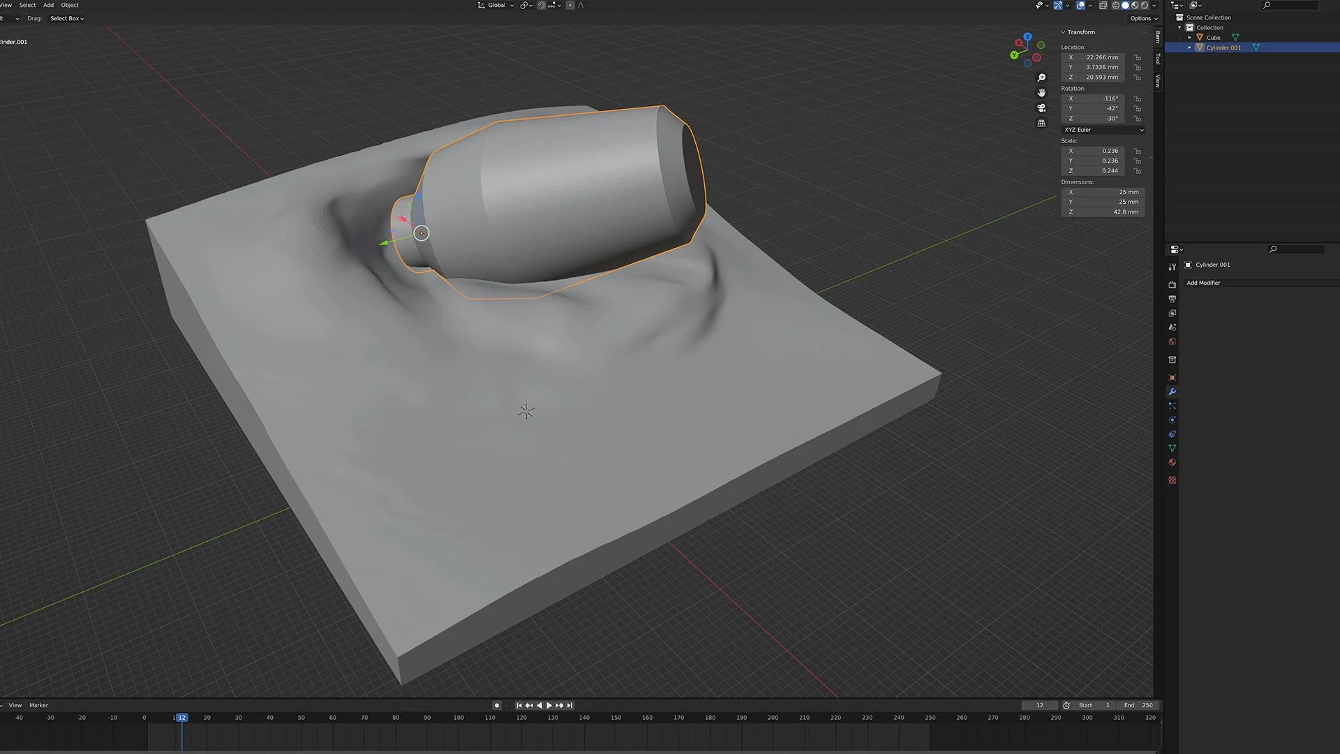 The diorama base was sculpted using Blender to create a simple, sloped design that mimics a desert landscape. To ensure a precise fit for the Escape Pod, measurements were taken with a digital caliper, and a mockup of the pod was created in Blender. The pod’s shape was subtracted from the base to form a perfect slot. A hole was added through the pod and base to accommodate a small magnet, securing the pod in place.