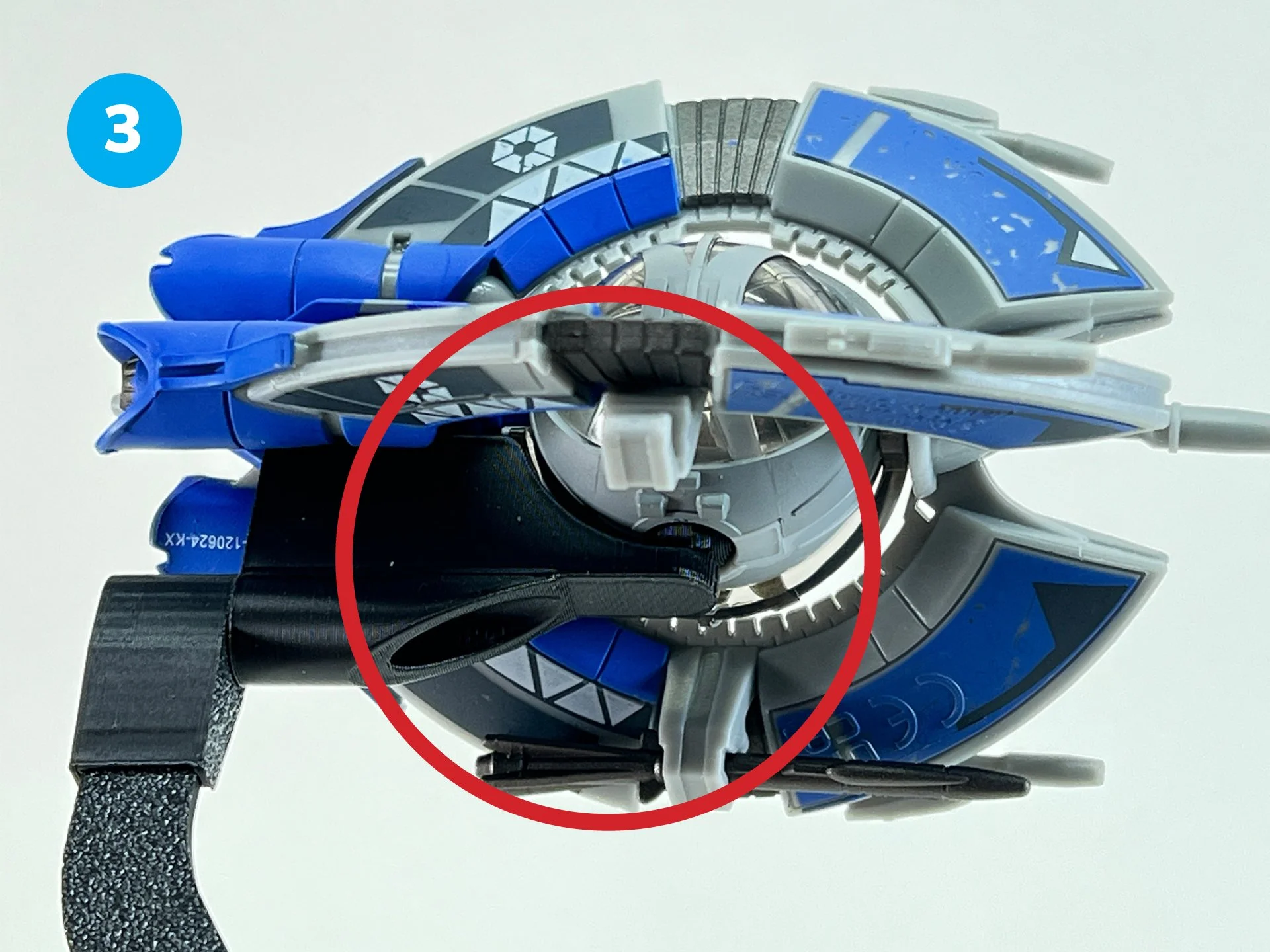 This stand is tailored specifically for the Micro Galaxy Squadron Tri-Fighter as depicted. Components are not interchangeable with other ship stands, as doing so may affect stability or performance. Adhere strictly to the provided assembly instructions for safe operation.