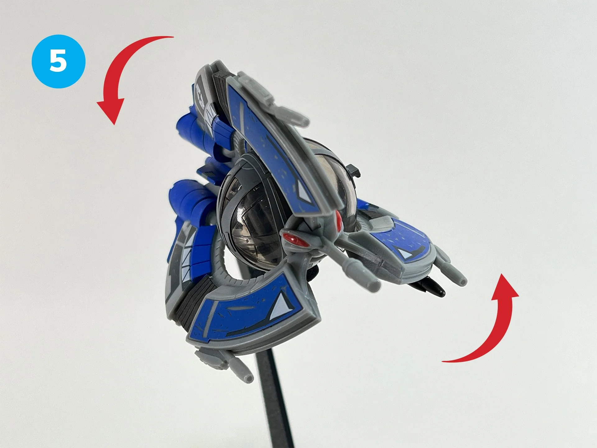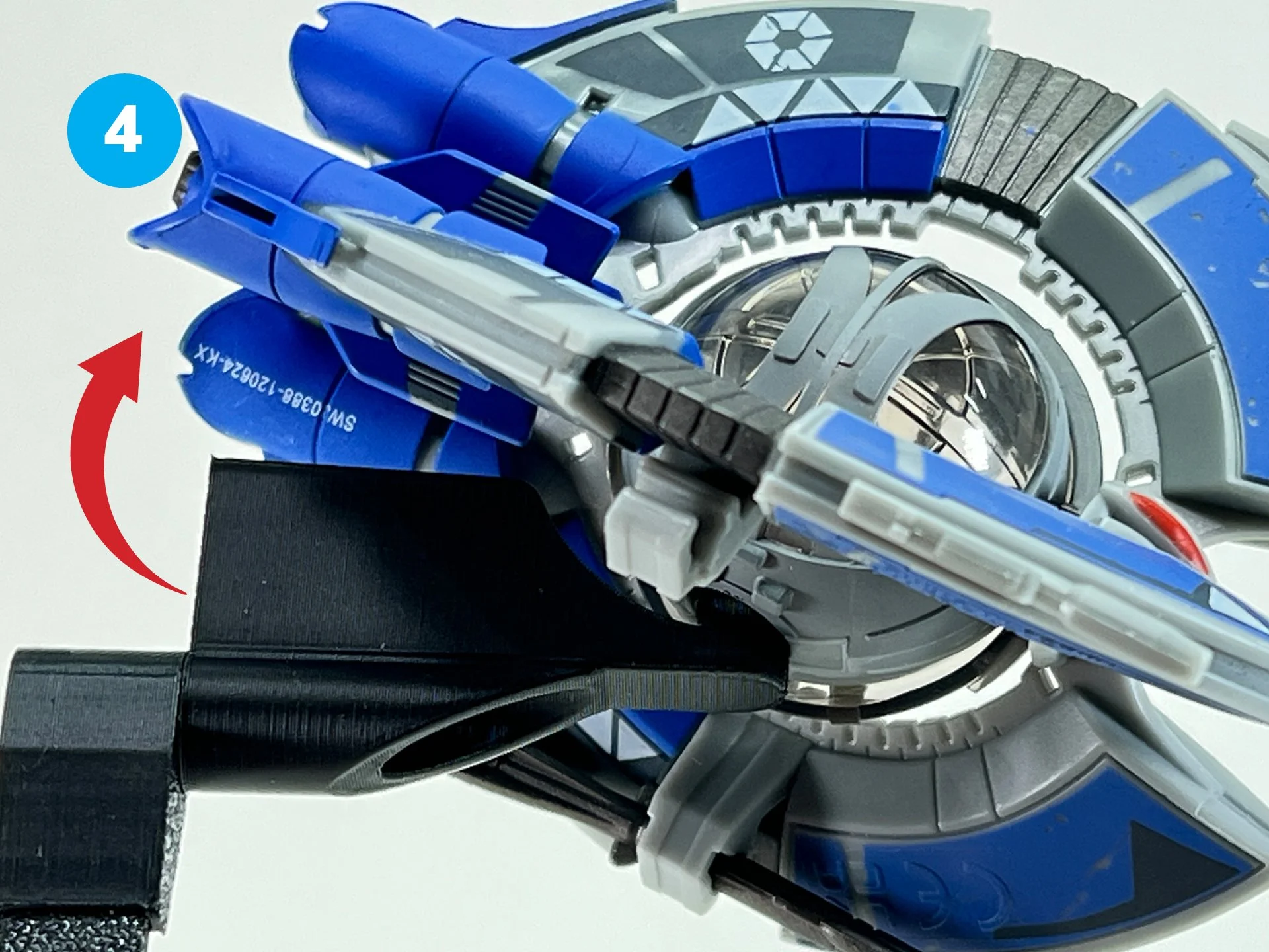 Flight-Ready Pose: Adjustable arm elevates the ship to simulate dynamic banking maneuvers. Features a durable rotation mechanism at the pivot point, secured by an M3 screw for long-lasting, smooth rotation without wear.